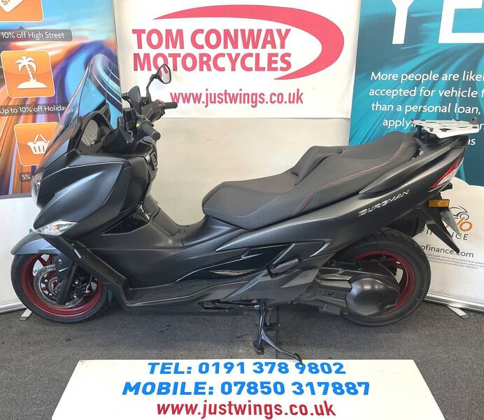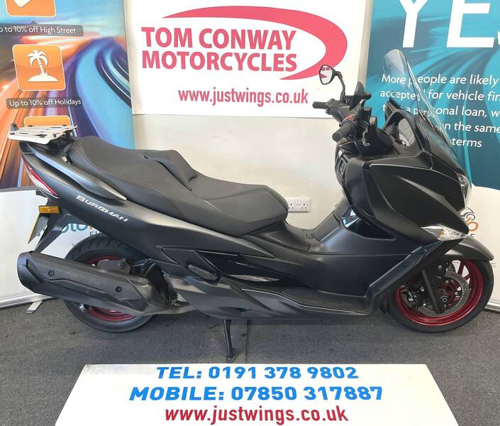 It has quite obviously from the excellent condition been garaged from new and only had fine weather use with no signs of winter corrosion. It comes with ABS brakes, an economy mode and is fitted with a Givi top box plate. It offers a very comfortable ride with plenty of zip backed up with Suzuki reliability. It comes with the Suzuki service book and both original keys. We can offer usual dealer facilities including part exchange, 12 months Warranty First warranties and finance packages. Please call 0191 3789802 shop or 07850 317887 mobile or email Tom@justwings.co.uk for more details or a finance quotation. £3495