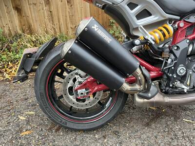 It is a stunning machine offering excellent performance and is laden with quality parts such as Akrapovic silencers, loads of carbon parts and Ohlins suspension front and rear. It has been garaged from new with only fine weather use and no winter corrosion. It has to be seen to be appreciated and is a real crowd puller. It comes with the owners manual, service receipts and both original keys. We can offer usual dealer facilities including part exchange, 12 months Warranty First warranties and finance packages including PCP deals. Please call 0191 3789802 Shop or 07850 317887 mobile or Email Tom@justwings.co.uk for more details or a finance quotation. £9995
