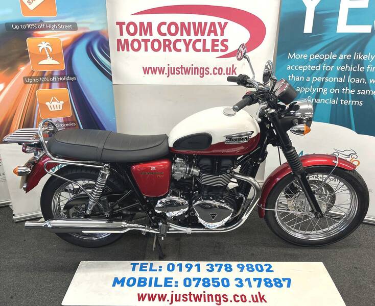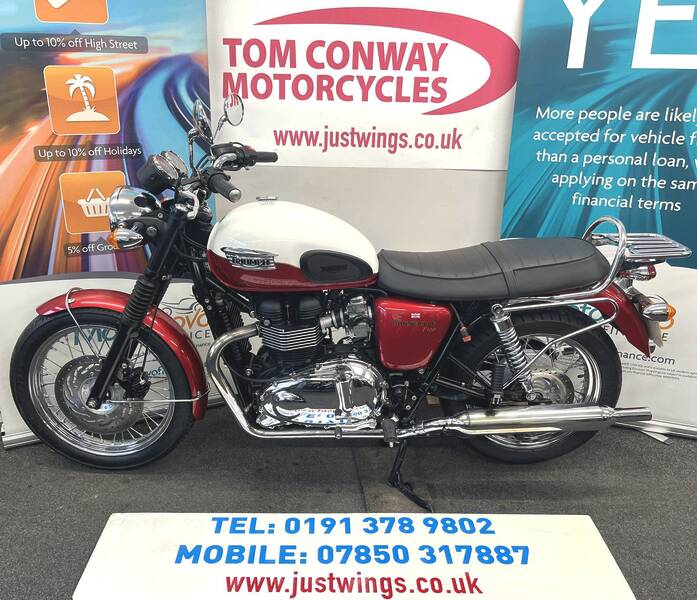 This bike has been dry stored from new and rarely seen the light of day. It has has 2 services and comes with the Triumph document holdall, owners manual, service book and spare keys. It has to be seen to be appreciated and looks as if it has never seen a wet road. These machines offer a lovely comfortable ride, fantastic retro looks backed up by Triumph quality. We can offer usual dealer facilities including part exchange, 12 months extended Warranty First warranties and finance packages. Please call 0191 3789802 shop or 07850 317887 mobile or email Tom@justwings.co.uk for more details or a finance quotation. £5995