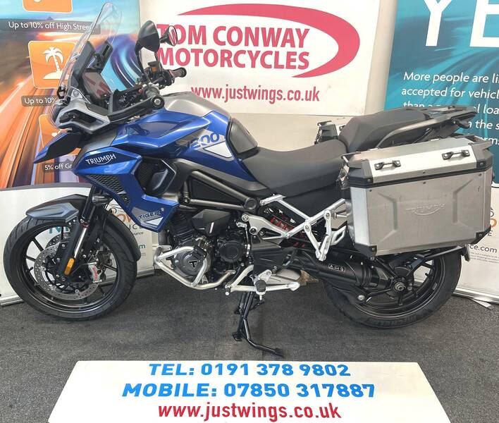 It has been garaged from new with and only been ridden as a fair weather bike with no signs of winter use or corrosion. It has all the GT Pro refinements such as a quick shifter, heated grips, rider modes, traction control, cruise control, spot lamps and more plus Triumph panniers. It comes complete with the Triumph document holdall, owners manual, service book and spare key. We can offer usual dealer facilities including part exchange, 12 months extended Warranty First warranties and finance packages including PCP finance deals. Please call 0191 3789802 shop or 07850 317887 mobile or email Tom@justwings.co.uk for more details or a finance quotation. £9295